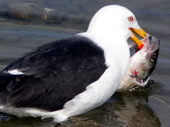 Gull tangled up with fish hook